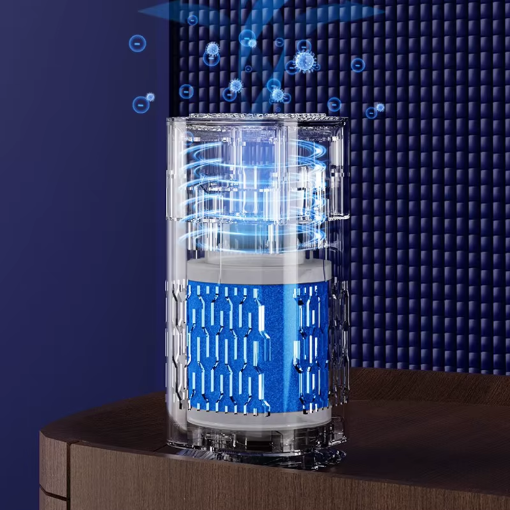 האוויר המזוהם נכנס דרך פתחי היניקה של המכשיר, עובר תהליך סינון באמצעות פילטר פחם פעיל ויונים שליליים, ומוזרם בחזרה לסביבה הקרובה כשהוא מאוזן ונעים יותר לנשימה.